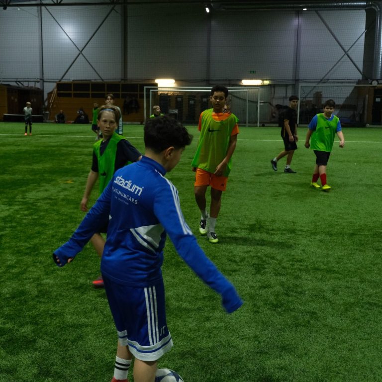 Vi delar in grupper efter ålder/nivå för att skapa rätt tempo och kvalitet. Träningen anpassas efter position och fokusområden men alltid med helheten i spelet i centrum.